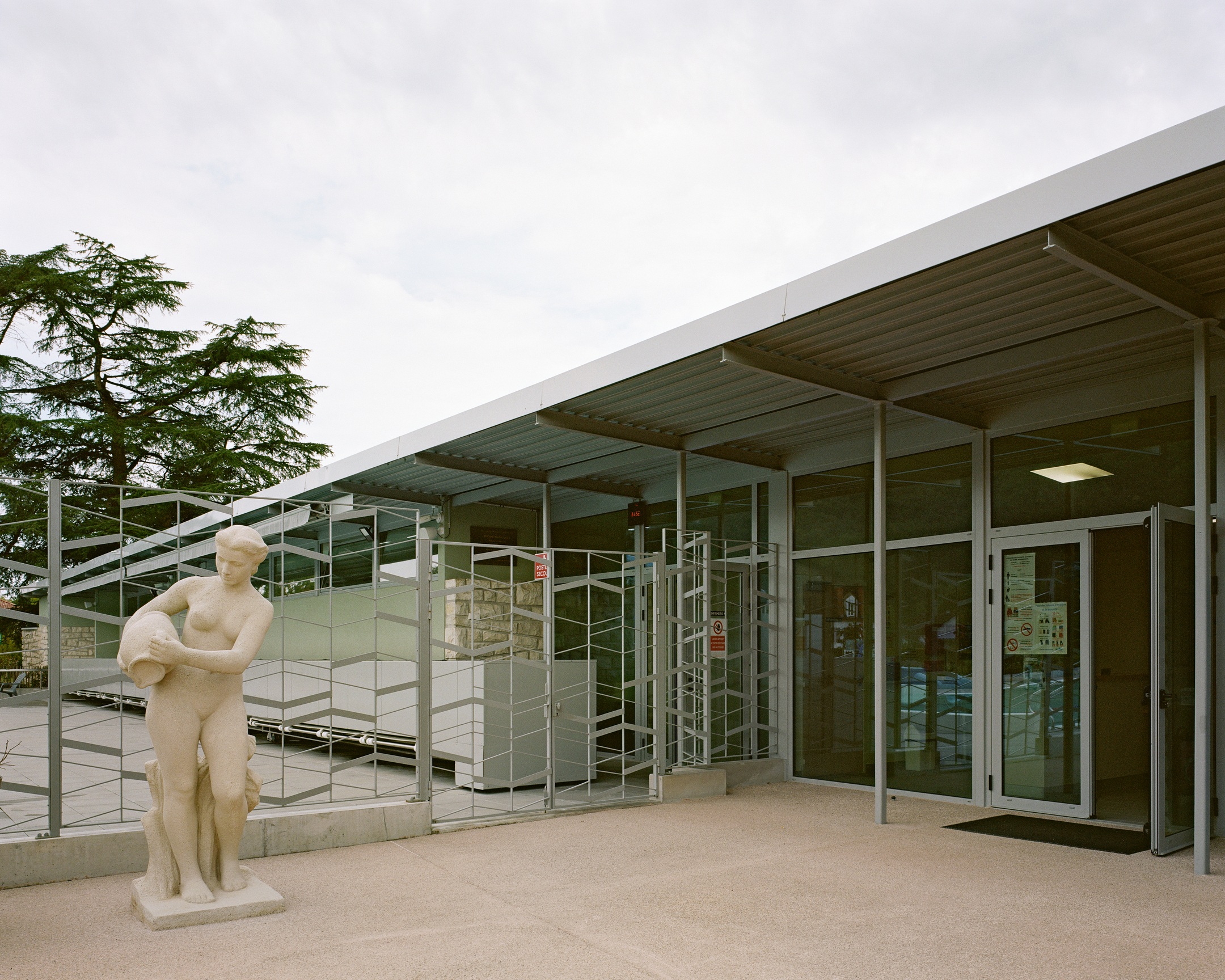 Restructuration complète de la piscine et des bassins extérieurs, avec reconversion de la piscine d’été pour un usage prolongé et création d’un bassin nordique. Les locaux intérieurs sont repensés pour garantir une marche en avant et un accès universel, tandis que des extensions intégrées accueillent vestiaires, sanitaires et locaux du personnel.