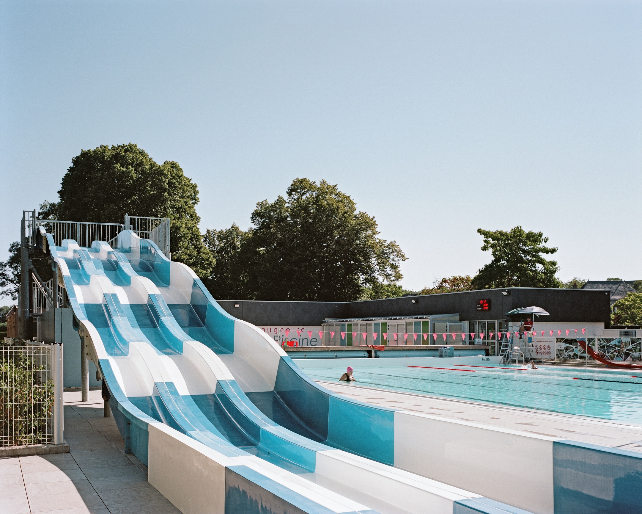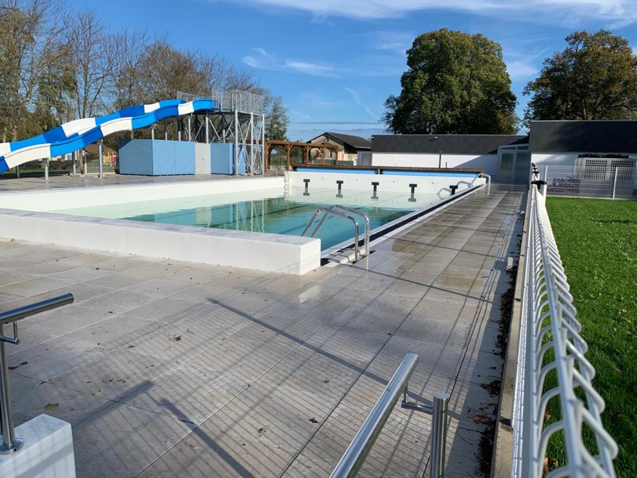 Le bassin extérieur de 25 × 12,5 m et l’ensemble des plages sont réhabilités, avec restructuration des bassins, des plages et des systèmes de traitement de l’eau. La pataugeoire est refaite avec jeux pour enfants, complétée par un espace ludique de 120 m² type splashpad et un Pentagliss à trois pistes. Les aménagements extérieurs intègrent un espace végétalisé accessible aux PMR.